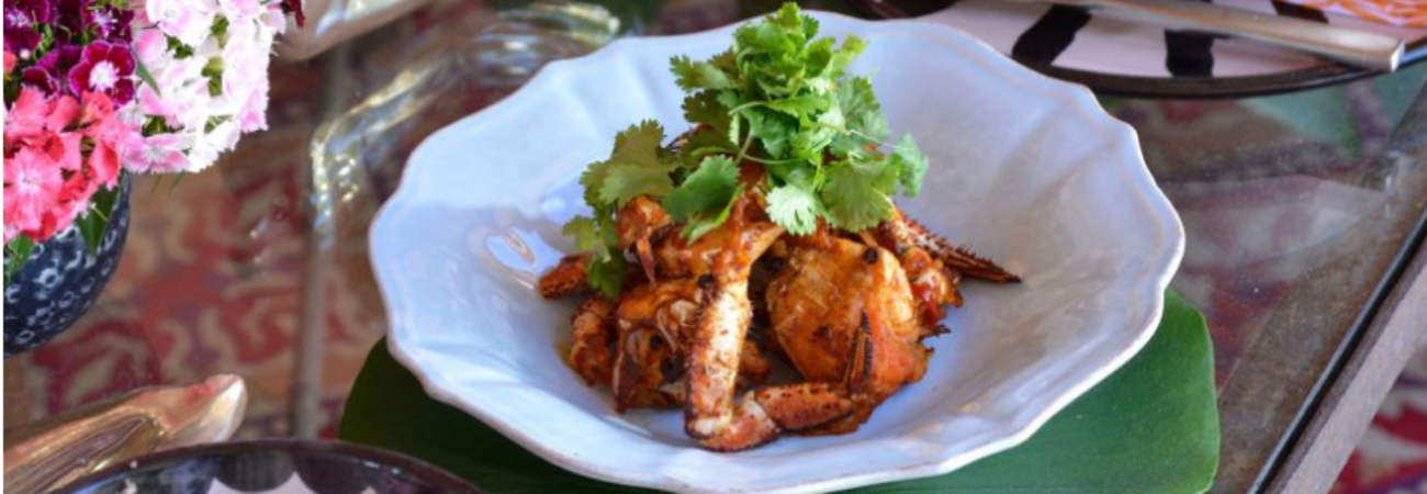 - Sirve en un plato el cangrejo adornado con cilantro y unas gotas de lima o limón, con las salsas por separado para remojar en cada bocado.