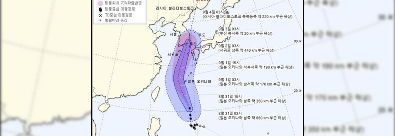 El tifón estaría llegando a Corea del Sur a 320 kilómetros de distancia de la isla Jeju, a las 9 AM KST, por lo que se pronostíca que estaría tocando tierra durante la madrugada del jueves a 20 kilómetros de Busan.