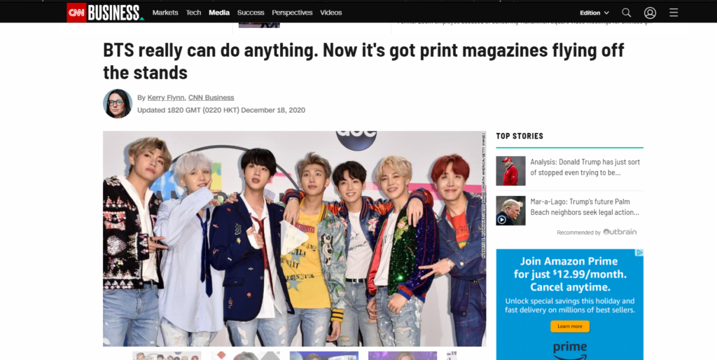 “Resulta que BTS también tiene una influencia enorme en las ventas de revistas. Los conglomerados de revistas y empresas de medios tuvieron problemas económicos durante la pandemia, lo que provocó despidos y licencias para mantener a flote las empresas.