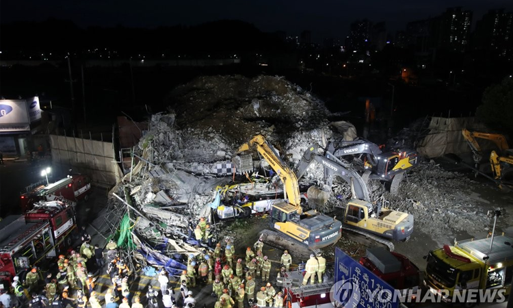 Los bomberos dijeron que siguen realizando operaciones de búsqueda en el sitio del edificio que se derrumbó este miércoles alrededor de las 4:22 PM KST, dejando enterrado entre los escombros a dos autobuses.